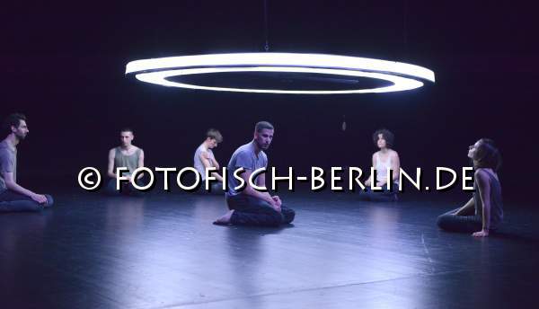 Ort: Hebbel am Ufer, hau 2. Kat Valastur. Titel: Ah! Oh! A Contemporary Ritual. Premiere: 5.12.2014. Konzept, Choreografie: Kat Valastur. Licht: Martin Beeretz. Kostueme: Lydia Sonderegger. Tanz: Sahar Levi, Leyla Postalcioglu, Annegret Schalke, Romain Thibaud-Rose, Enrico Ticconi, Marysia Zimpel Im Bild: Ensemble