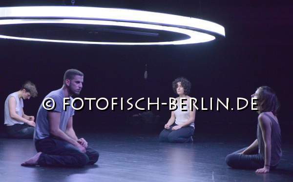 Ort: Hebbel am Ufer, hau 2. Kat Valastur. Titel: Ah! Oh! A Contemporary Ritual. Premiere: 5.12.2014. Konzept, Choreografie: Kat Valastur. Licht: Martin Beeretz. Kostueme: Lydia Sonderegger. Tanz: Sahar Levi, Leyla Postalcioglu, Annegret Schalke, Romain Thibaud-Rose, Enrico Ticconi, Marysia Zimpel Im Bild: Ensemble