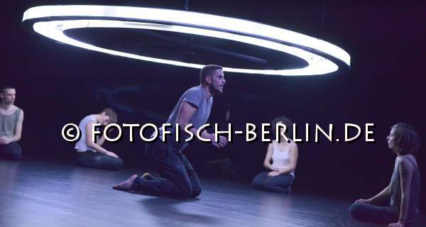 Ort: Hebbel am Ufer, hau 2. Kat Valastur. Titel: Ah! Oh! A Contemporary Ritual. Premiere: 5.12.2014. Konzept, Choreografie: Kat Valastur. Licht: Martin Beeretz. Kostueme: Lydia Sonderegger. Tanz: Sahar Levi, Leyla Postalcioglu, Annegret Schalke, Romain Thibaud-Rose, Enrico Ticconi, Marysia Zimpel Im Bild: Ensemble