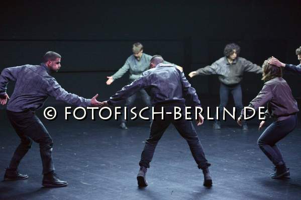 Ort: Hebbel am Ufer, hau 2. Kat Valastur. Titel: Ah! Oh! A Contemporary Ritual. Premiere: 5.12.2014. Konzept, Choreografie: Kat Valastur. Licht: Martin Beeretz. Kostueme: Lydia Sonderegger. Tanz: Sahar Levi, Leyla Postalcioglu, Annegret Schalke, Romain Thibaud-Rose, Enrico Ticconi, Marysia Zimpel Im Bild: Ensemble