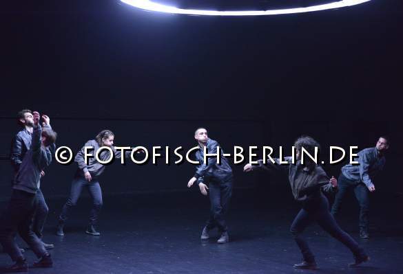 Ort: Hebbel am Ufer, hau 2. Kat Valastur. Titel: Ah! Oh! A Contemporary Ritual. Premiere: 5.12.2014. Konzept, Choreografie: Kat Valastur. Licht: Martin Beeretz. Kostueme: Lydia Sonderegger. Tanz: Sahar Levi, Leyla Postalcioglu, Annegret Schalke, Romain Thibaud-Rose, Enrico Ticconi, Marysia Zimpel Im Bild: Ensemble