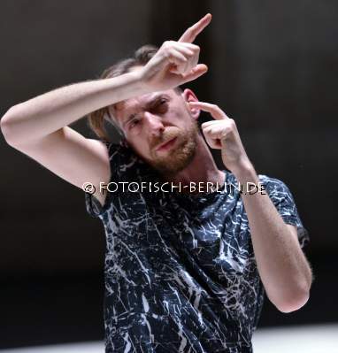 Ort: Sophiensaele. Julian Weber. Titel: FORMEN FORMEN. Premiere: 23.01.2015. Choreografie, Skulptur: Julian Weber. Licht: Annegret Schalke. Musik: Els Vandeweyer, Brendan Dougherty. Kreation, Tanz: Nik Haffner, Hermann Heisig, Peter Pleyer, Meg Stuart, Claudia Tomasi. Im Bild: Herman Heisig