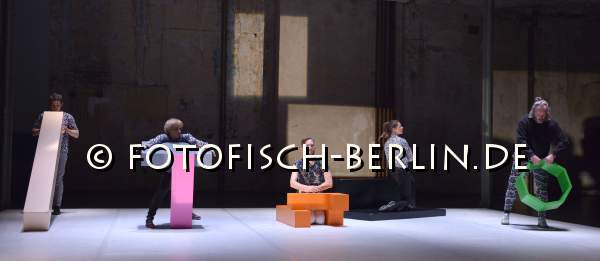 Ort: Sophiensaele. Julian Weber. Titel: FORMEN FORMEN. Premiere: 23.01.2015. Choreografie, Skulptur: Julian Weber. Licht: Annegret Schalke. Musik: Els Vandeweyer, Brendan Dougherty. Kreation, Tanz: Nik Haffner, Hermann Heisig, Peter Pleyer, Meg Stuart, Claudia Tomasi.