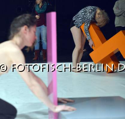 Ort: Sophiensaele. Julian Weber. Titel: FORMEN FORMEN. Premiere: 23.01.2015. Choreografie, Skulptur: Julian Weber. Licht: Annegret Schalke. Musik: Els Vandeweyer, Brendan Dougherty. Kreation, Tanz: Nik Haffner, Hermann Heisig, Peter Pleyer, Meg Stuart, Claudia Tomasi.
