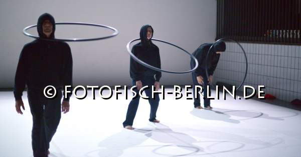 Ort: Uferstudio 1. Tanzcompagnie Rubato. Titel: UNCERTAIN STATES. Urauffuehrung: 18.3.2015. Kuenstlerische Leitung, Idee, Buehne: Jutta Hell, Dieter Baumann. Inszenierung, Choreografie, Kostuem: Jutta Hell. Musik: Da Bao. Licht: Fabian Bleisch. Tanz, Choreografie: Mercedes Appugliese, Anja Sielaff, Dieter Baumann, Carlos Osatinsky, Fernando Pelliccioli. Im Bild: Ensemble