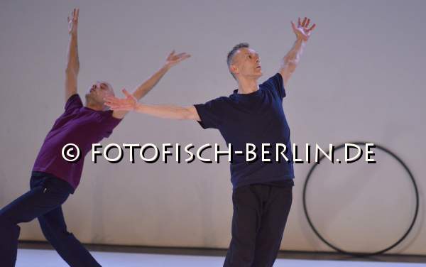 Ort: Uferstudio 1. Tanzcompagnie Rubato. Titel: UNCERTAIN STATES. Urauffuehrung: 18.3.2015. Kuenstlerische Leitung, Idee, Buehne: Jutta Hell, Dieter Baumann. Inszenierung, Choreografie, Kostuem: Jutta Hell. Musik: Da Bao. Licht: Fabian Bleisch. Tanz, Choreografie: Mercedes Appugliese, Anja Sielaff, Dieter Baumann, Carlos Osatinsky, Fernando Pelliccioli. Im Bild: Dieter Baumann, Fernando Pelliccioli