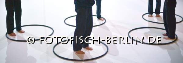 Ort: Uferstudio 1. Tanzcompagnie Rubato. Titel: UNCERTAIN STATES. Urauffuehrung: 18.3.2015. Kuenstlerische Leitung, Idee, Buehne: Jutta Hell, Dieter Baumann. Inszenierung, Choreografie, Kostuem: Jutta Hell. Musik: Da Bao. Licht: Fabian Bleisch. Tanz, Choreografie: Mercedes Appugliese, Anja Sielaff, Dieter Baumann, Carlos Osatinsky, Fernando Pelliccioli. Im Bild: Ensemble