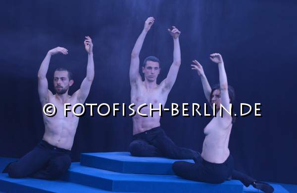 Ort: Sophiensaele. Lea Moro. Titel: (B)REACHING STILLNESS. Premiere: 04.06.2015. Konzept, Choreografie, Tanz: Lea Moro. Co-Choreografie, Tanz: Enrico Ticconi, Jorge De Hoyos. Licht: Annegret Schalke. Kostuem: Lydia Sonderegger. Klangregie: Marcus Thomas. Im Bild: Jorge De Hoyos, Lea Moro, Enrico Ticconi
