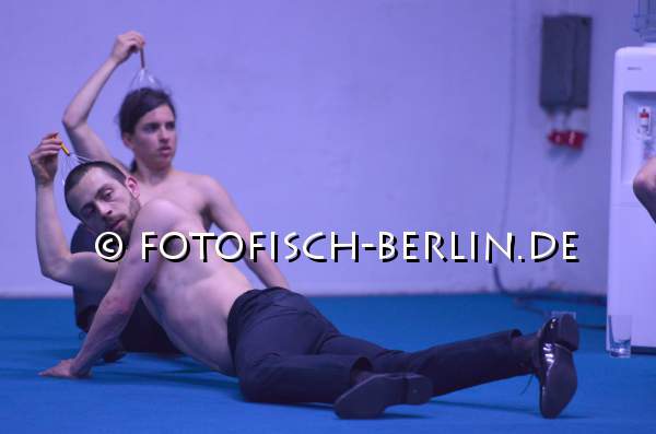 Ort: Sophiensaele. Lea Moro. Titel: (B)REACHING STILLNESS. Premiere: 04.06.2015. Konzept, Choreografie, Tanz: Lea Moro. Co-Choreografie, Tanz: Enrico Ticconi, Jorge De Hoyos. Licht: Annegret Schalke. Kostuem: Lydia Sonderegger. Klangregie: Marcus Thomas. Im Bild: Jorge De Hoyos, Lea Moro