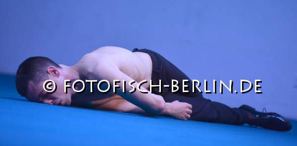 Ort: Sophiensaele. Lea Moro. Titel: (B)REACHING STILLNESS. Premiere: 04.06.2015. Konzept, Choreografie, Tanz: Lea Moro. Co-Choreografie, Tanz: Enrico Ticconi, Jorge De Hoyos. Licht: Annegret Schalke. Kostuem: Lydia Sonderegger. Klangregie: Marcus Thomas.