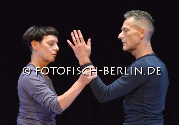 Ort: Uferstudio, Studio 14. 30 Jahre Tanzcompagnie Rubato. Titel: Wiederholung + Differenz_Drei Duette. Ein Tryptychon. Premiere: 24.09.2015. Choreografie und Tanz: Jutta Hell, Dieter Baumann. Buehne: Bi Rongron. Musik: Wolfgang Bley Borkowski, Reinhold Friedl. Licht: Fabian Bleisch. Im Bild: Jutta Hell, Dieter Baumann