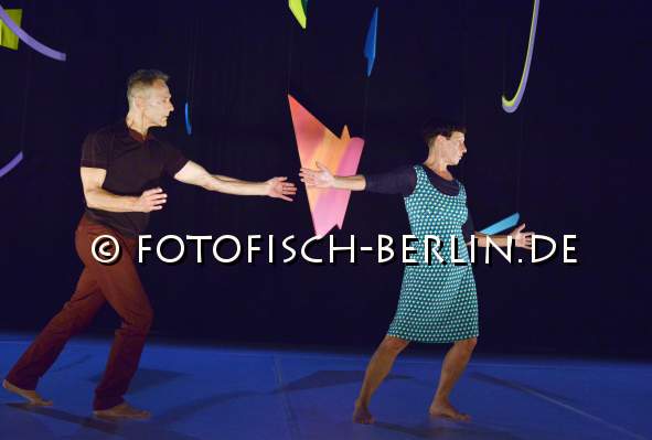 Ort: Uferstudio, Studio 14. 30 Jahre Tanzcompagnie Rubato. Titel: Wiederholung + Differenz_Drei Duette. Ein Tryptychon. Premiere: 24.09.2015. Choreografie und Tanz: Jutta Hell, Dieter Baumann. Buehne: Bi Rongron. Musik: Wolfgang Bley Borkowski, Reinhold Friedl. Licht: Fabian Bleisch. Im Bild: Jutta Hell, Dieter Baumann