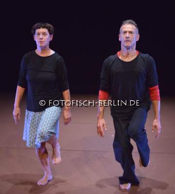 Ort: Uferstudio, Studio 14. 30 Jahre Tanzcompagnie Rubato. Titel: Wiederholung + Differenz_Drei Duette. Ein Tryptychon. Premiere: 24.09.2015. Choreografie und Tanz: Jutta Hell, Dieter Baumann. Buehne: Bi Rongron. Musik: Wolfgang Bley Borkowski, Reinhold Friedl. Licht: Fabian Bleisch. Im Bild: Jutta Hell, Dieter Baumann