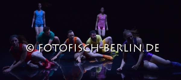 Ort: Sophiensaele. Festival: Every Step You Take. Paula Rosolen. Titel: AEROBICS! Ein Ballett in 3 Akten. KONZEPT, CHOREOGRAFIE: Paula Rosolen. Licht: Tanja Ruehl. Kostueme: Juan M. Morales, Anika Alischewski, Takako Senda. Erarbeitet und Tanz: Jungyun Bae, Teresa Forstreuter/Sanna Lundstroem, Gabriela Gobbi, Christopher Matthews, Marko Milic, Sabine Prokop, Paula Rosolen Im Bild: Ensemble
