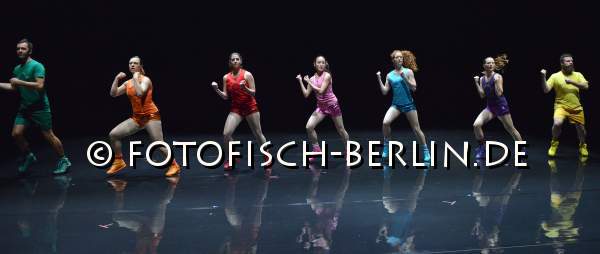 Ort: Sophiensaele. Festival: Every Step You Take. Paula Rosolen. Titel: AEROBICS! Ein Ballett in 3 Akten. KONZEPT, CHOREOGRAFIE: Paula Rosolen. Licht: Tanja Ruehl. Kostueme: Juan M. Morales, Anika Alischewski, Takako Senda. Erarbeitet und Tanz: Jungyun Bae, Teresa Forstreuter/Sanna Lundstroem, Gabriela Gobbi, Christopher Matthews, Marko Milic, Sabine Prokop, Paula Rosolen Im Bild: Ensemble