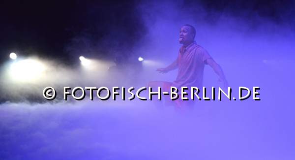 Ort: Sophiensaele. Christoph Winkler. Titel: GOLDEN STARS ON BLUE _ A SONIC TABLEAU. Premiere: 15.10.2015. Konzept: Christoph Winkler. Licht: Arne Schmitt. Musik: Europahymne, Paul Stretch, Tian Rotteveel. Von und mit: Karima El Amrani, Aimée Lagrange, Pietro Pireddu, Ahmed Soura, Aloalii Naughton Tapu, Naishi Wang Im Bild: Aloalii Naughton Tapu