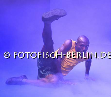 Ort: Sophiensaele. Christoph Winkler. Titel: GOLDEN STARS ON BLUE _ A SONIC TABLEAU. Premiere: 15.10.2015. Konzept: Christoph Winkler. Licht: Arne Schmitt. Musik: Europahymne, Paul Stretch, Tian Rotteveel. Von und mit: Karima El Amrani, Aimée Lagrange, Pietro Pireddu, Ahmed Soura, Aloalii Naughton Tapu, Naishi Wang Im Bild: Ahmed Soura