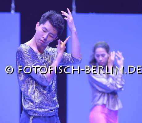 Ort: Sophiensaele. Christoph Winkler. Titel: GOLDEN STARS ON BLUE _ A SONIC TABLEAU. Premiere: 15.10.2015. Konzept: Christoph Winkler. Licht: Arne Schmitt. Musik: Europahymne, Paul Stretch, Tian Rotteveel. Von und mit: Karima El Amrani, Aimée Lagrange, Pietro Pireddu, Ahmed Soura, Aloalii Naughton Tapu, Naishi Wang