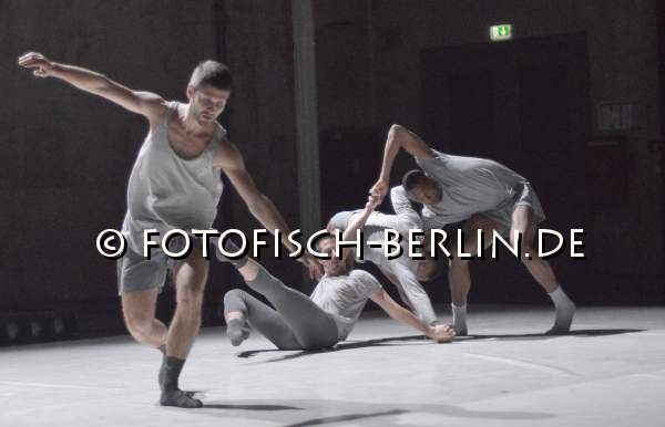 Ort: Sophiensaele. Tanztage Berlin 2016. 07.-17.01.2016 Roderick George. Titel: DUST. Premiere: 07.01.16. CHOREOGRAFIE, KOSTUEM: Roderick George. MUSIK: SAD (Josh Johnson, Cyril Baldy). LICHT: Tanja Ruehl PERFORMANCE: Roderick George, Corey Scott-Gilbert, Dominic Santia, Kevin Quinaou. Im Bild: Ensemble