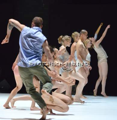 Ort: Hebbel am Ufer, hau1. Tanz im August 2016. 28. Internationales Festival Berlin. 12.08.-04.09.2016. Emanuel Gat, Awir Leon. Titel: SUNNY. Deutschlandpremiere: 12.08.2016. Choreografie, Licht: Emanuel Gat. Kostuem: Emanuel Gat u. Taenzer*innen. Sound: Frederic Duru. Licht: Guillaume Fevrier. Mit: Annie Hanauer, Anastasia Ivanova, Pansun Kim, Michael Loehr, Genevieve Osborne, Milena Twiehaus, Tom Weinberger, Sara Wilhelmsson, Ashley Wright, Daniela Zaghini. Im Bild: Ensemble
