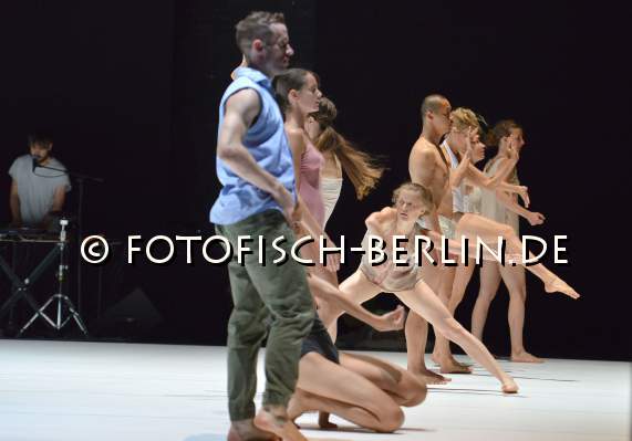 Ort: Hebbel am Ufer, hau1. Tanz im August 2016. 28. Internationales Festival Berlin. 12.08.-04.09.2016. Emanuel Gat, Awir Leon. Titel: SUNNY. Deutschlandpremiere: 12.08.2016. Choreografie, Licht: Emanuel Gat. Kostuem: Emanuel Gat u. Taenzer*innen. Sound: Frederic Duru. Licht: Guillaume Fevrier. Mit: Annie Hanauer, Anastasia Ivanova, Pansun Kim, Michael Loehr, Genevieve Osborne, Milena Twiehaus, Tom Weinberger, Sara Wilhelmsson, Ashley Wright, Daniela Zaghini. Im Bild: Ensemble