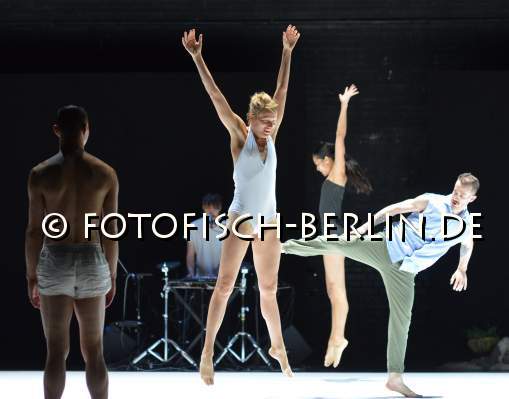 Ort: Hebbel am Ufer, hau1. Tanz im August 2016. 28. Internationales Festival Berlin. 12.08.-04.09.2016. Emanuel Gat, Awir Leon. Titel: SUNNY. Deutschlandpremiere: 12.08.2016. Choreografie, Licht: Emanuel Gat. Kostuem: Emanuel Gat u. Taenzer*innen. Sound: Frederic Duru. Licht: Guillaume Fevrier. Mit: Annie Hanauer, Anastasia Ivanova, Pansun Kim, Michael Loehr, Genevieve Osborne, Milena Twiehaus, Tom Weinberger, Sara Wilhelmsson, Ashley Wright, Daniela Zaghini. Im Bild: Ensemble
