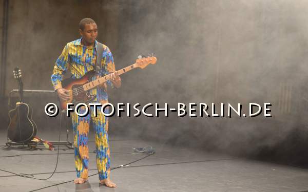 Ort: Sophiensaele. Flinn Works + Asedeva. Titel: MAJI MAJI FLAVA. Postkoloniale Theaterperformance. Choreografie: Isack Peter Abeneko. Regie: Sophia Stepf. Ausstatung: Brigitte Schima. Musikalische Leitung: Jan S. Beyer. Mit: Isack Peter Abeneko, Jan S. Beyer, Sabrina Ceesay, Konradin Kunze, Shabani Mugado, Lisa Stepf Im Bild: Ensemble Flinnworks