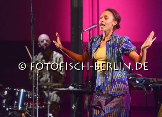 Ort: Sophiensaele. Flinn Works + Asedeva. Titel: MAJI MAJI FLAVA. Postkoloniale Theaterperformance. Choreografie: Isack Peter Abeneko. Regie: Sophia Stepf. Ausstatung: Brigitte Schima. Musikalische Leitung: Jan S. Beyer. Mit: Isack Peter Abeneko, Jan S. Beyer, Sabrina Ceesay, Konradin Kunze, Shabani Mugado, Lisa Stepf Im Bild: Ensemble Flinnworks