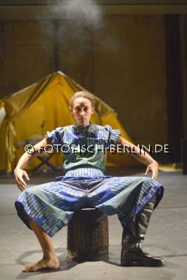 Ort: Sophiensaele. Flinn Works + Asedeva. Titel: MAJI MAJI FLAVA. Postkoloniale Theaterperformance. Choreografie: Isack Peter Abeneko. Regie: Sophia Stepf. Ausstatung: Brigitte Schima. Musikalische Leitung: Jan S. Beyer. Mit: Isack Peter Abeneko, Jan S. Beyer, Sabrina Ceesay, Konradin Kunze, Shabani Mugado, Lisa Stepf Im Bild: Ensemble Flinnworks