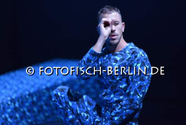 Ort: Hebbel am Ufer, hau 3. Adam Linder. Titel: KEIN PARADISO. Premiere: 26.10.2016. Konzept: Adam Linder. Buehne: Shahryar Nashat. Mit: Adam Linder, Jennie Mary Tai Liu, Stephen Thompson. Im Bild: Adam Linder