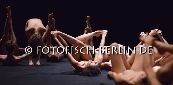 Ort: Hebbel am Ufer, hau2. Isabelle Schad. Titel: PIECES AND ELEMENTS. Premiere: 25.11.2016. Konzept, Choreografie: Isabelle Schad. Licht: Medi Toutain-Lopez. Sound: Damir Simunovic. Kostueme: Charlotte Pistorius. Mit: Jozefien Beckers, Barbara Berti, Frederike Doffin, Naima Ferre, Josephine Findeisen, Prezemek Kaminski, Mathis Kleinschnittger, Manuel Lindner, Adi Shildan, Claudia Tomasi, Nir Vidan, Naralia Wild. Im Bild: Ensemble