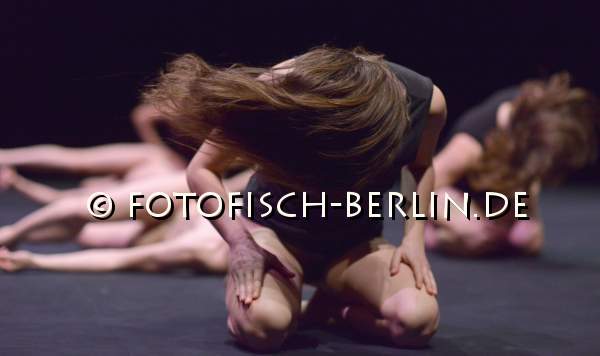 Ort: Hebbel am Ufer, hau2. Isabelle Schad. Titel: PIECES AND ELEMENTS. Premiere: 25.11.2016. Konzept, Choreografie: Isabelle Schad. Licht: Medi Toutain-Lopez. Sound: Damir Simunovic. Kostueme: Charlotte Pistorius. Mit: Jozefien Beckers, Barbara Berti, Frederike Doffin, Naima Ferre, Josephine Findeisen, Prezemek Kaminski, Mathis Kleinschnittger, Manuel Lindner, Adi Shildan, Claudia Tomasi, Nir Vidan, Naralia Wild. Im Bild: Ensemble