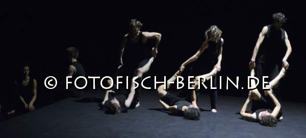 Ort: Hebbel am Ufer, hau2. Isabelle Schad. Titel: PIECES AND ELEMENTS. Premiere: 25.11.2016. Konzept, Choreografie: Isabelle Schad. Licht: Medi Toutain-Lopez. Sound: Damir Simunovic. Kostueme: Charlotte Pistorius. Mit: Jozefien Beckers, Barbara Berti, Frederike Doffin, Naima Ferre, Josephine Findeisen, Prezemek Kaminski, Mathis Kleinschnittger, Manuel Lindner, Adi Shildan, Claudia Tomasi, Nir Vidan, Naralia Wild. Im Bild: Ensemble