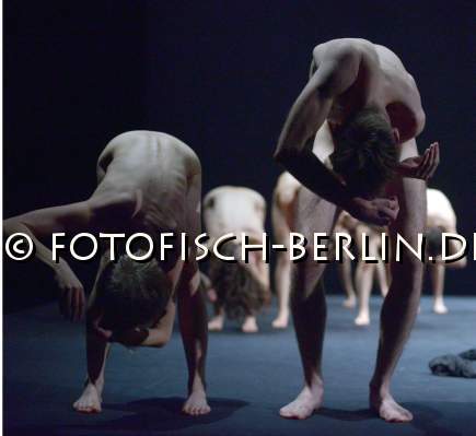Ort: Hebbel am Ufer, hau2. Isabelle Schad. Titel: PIECES AND ELEMENTS. Premiere: 25.11.2016. Konzept, Choreografie: Isabelle Schad. Licht: Medi Toutain-Lopez. Sound: Damir Simunovic. Kostueme: Charlotte Pistorius. Mit: Jozefien Beckers, Barbara Berti, Frederike Doffin, Naima Ferre, Josephine Findeisen, Prezemek Kaminski, Mathis Kleinschnittger, Manuel Lindner, Adi Shildan, Claudia Tomasi, Nir Vidan, Naralia Wild. Im Bild: Ensemble