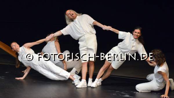Ort: Hebbel am Ufer, hau 2 Titel: Tanz im August_29. Internationales Festival Berlin. 11.08.-02.09.2017. Lea Moro: FUN. Deutschlandpremiere: 10.8.17. Choreogafie, Konzept: Lea Moro. Sound: Jana Sotzko. Buehne, Kostueme: Mascha Mihoa Bischoff. Von und mit: Dani Brown, Micha Goldberg, Lea Moro, Andrius Mulokas, Jana Sotzko, Emma Tricard. Im Bild: Ensemble