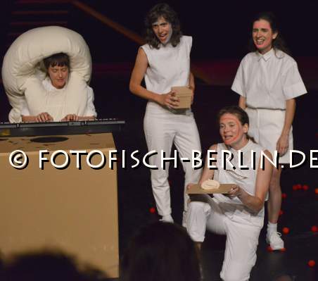 Ort: Hebbel am Ufer, hau 2 Titel: Tanz im August_29. Internationales Festival Berlin. 11.08.-02.09.2017. Lea Moro: FUN. Deutschlandpremiere: 10.8.17. Choreogafie, Konzept: Lea Moro. Sound: Jana Sotzko. Buehne, Kostueme: Mascha Mihoa Bischoff. Von und mit: Dani Brown, Micha Goldberg, Lea Moro, Andrius Mulokas, Jana Sotzko, Emma Tricard. Im Bild: Ensemble