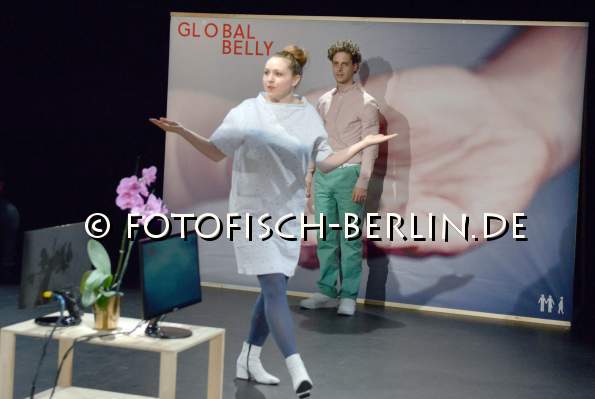 Ort: Sophiensaele Berlin. FLINN WORKS Titel: GLOBAL BALLY. Premiere: 12.10.2107. Ausstattung: Philine Rinnert. Regie: Sophia Stepf. Performance: Anne Hoffmann, Matthias Renger, Sonata, Lea Whitcher