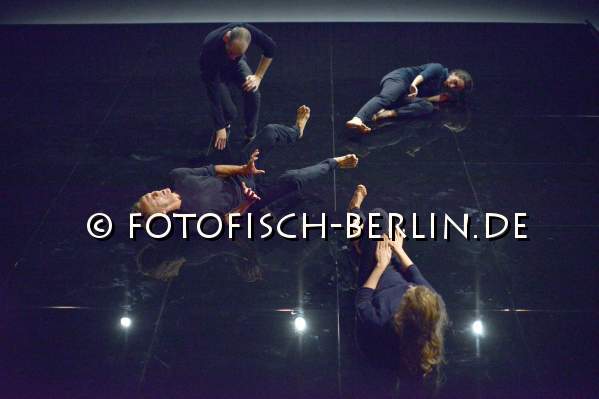 Ort: Uferstudio Berlin. Tanzcompagnie Rubato. Titel: FLIRREN. PREMIERE: 15.11.2017. Idee, Konzept, Buehne: Jutta Hell, Dieter Baumann | Inszenierung, Choreografie: Jutta Hell | Tanz, Choreografie: Mercedes Appugliese, Dieter Baumann, Carlos Osatinsky, Anja Sielaff | Live Musik, Komposition Alexander Nickmann | Licht: Fabian Bleisch Im Bild: Ensemble
