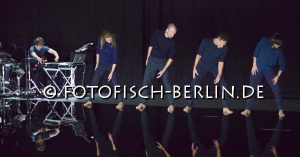 Ort: Uferstudio Berlin. Tanzcompagnie Rubato. Titel: FLIRREN. PREMIERE: 15.11.2017. Idee, Konzept, Buehne: Jutta Hell, Dieter Baumann | Inszenierung, Choreografie: Jutta Hell | Tanz, Choreografie: Mercedes Appugliese, Dieter Baumann, Carlos Osatinsky, Anja Sielaff | Live Musik, Komposition Alexander Nickmann | Licht: Fabian Bleisch Im Bild: Ensemble