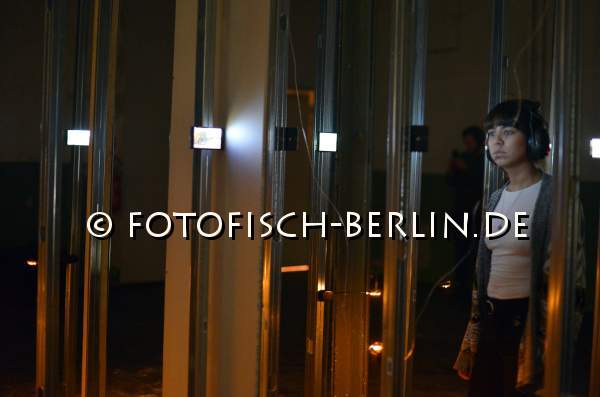 Ort: Sophiensaele Berlin. Daniel Koetter, Hannes Seidl Titel: STADT (LAND FLUSS). PREMIERE: 16.11.2017. Kuenstlerische Leitung: Daniel Koetter, Hannes Seidl. Elektromagnetische Klaenge: Christina Kubisch. Musik, Performance: Sebastian Berweck, Martin Lorenz, Andrea Neumann. Raum: Paul Zoller Im Bild: Generalprobe mit Zuschauern