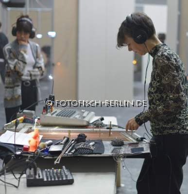 Ort: Sophiensaele Berlin. Daniel Koetter, Hannes Seidl Titel: STADT (LAND FLUSS). PREMIERE: 16.11.2017. Kuenstlerische Leitung: Daniel Koetter, Hannes Seidl. Elektromagnetische Klaenge: Christina Kubisch. Musik, Performance: Sebastian Berweck, Martin Lorenz, Andrea Neumann. Raum: Paul Zoller Im Bild: Generalprobe mit Zuschauern