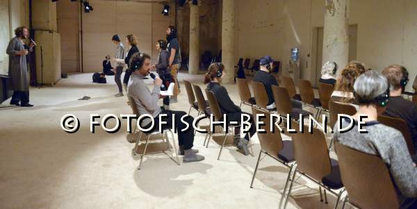 Ort: Sophiensaele Berlin. Turbo Pascal. Titel: BOESE HAEUSER. Premiere: 28.11.2017 KONZEPT: Turbo Pascal. VON UND MIT: Bettina Grahs, Friedrich Greiling, Angela Loeer, Frank Oberhaeußer, Luis Pfeiffer, Eva Plischke. MUSIK: Friedrich Greiling AUSSTATTUNG: Janina Janke Im Bild: Impressionen der Generalprobe mit Zuschauern, Luis Pfeiffer (mi)