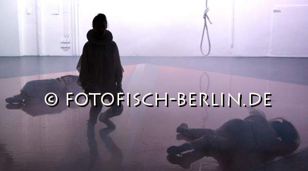 Ort: Sophiensaele Berlin. Kareth Schaffer. Titel: CASSANDRA HAS TURNED 2. Premiere: 18.04.2018. Choreografie, Libretto: Kareth Schaffer. Licht: Joseph Wegemann. Sound: Alessio Castellacci. Buehne, Kostueme: Olga Sonja Thorarensen. Performance: Manon Parent, Lisa Vereerbrugghen, Cathy Walsh. Im Bild: Manon Parent, Lisa Vereerbrugghen, Cathy Walsh