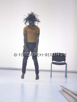 Ort: Ballhaus Ost, Berlin. Christoph Winkler. Titel: BRETTER, DIE DIE WELT BEDEUTEN. Premiere: 19.04.2018 Konzept, Choreographie: Christoph Winkler. Choreografie, Tanz: Robert Ssempijja. Ausstattung: Valentina Primavera. Videoschnitt: Mirko Winkel, Veith Michel. Im Bild: Robert Ssempijja