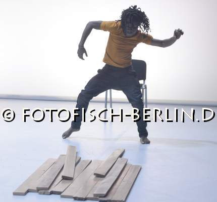 Ort: Ballhaus Ost, Berlin. Christoph Winkler. Titel: BRETTER, DIE DIE WELT BEDEUTEN. Premiere: 19.04.2018 Konzept, Choreographie: Christoph Winkler. Choreografie, Tanz: Robert Ssempijja. Ausstattung: Valentina Primavera. Videoschnitt: Mirko Winkel, Veith Michel. Im Bild: Robert Ssempijja