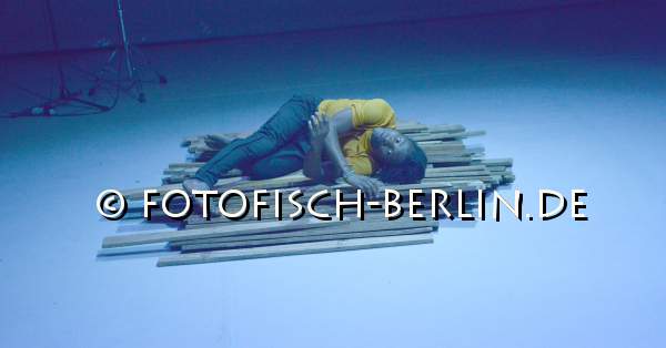 Ort: Ballhaus Ost, Berlin. Christoph Winkler. Titel: BRETTER, DIE DIE WELT BEDEUTEN. Premiere: 19.04.2018 Konzept, Choreographie: Christoph Winkler. Choreografie, Tanz: Robert Ssempijja. Ausstattung: Valentina Primavera. Videoschnitt: Mirko Winkel, Veith Michel. Im Bild: Robert Ssempijja