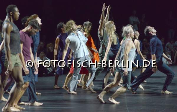 Ort: Radialsystem V. Sasha Waltz & Guests. Titel: EXODOS. Urauffuehrung: 23.08.2018. Regie und Choreographie: Sasha Waltz. Buehne: Heike Schuppelius und Sasha Waltz. Kostueme: Federico Polucci und Sasha Waltz & Guests. Licht: Urs Schoenebaum. Musik: Soundwalk Collective. Tanz und Choreographie: Tanz und Choreographie: Sasha Waltz & Guests Im Bild: Sasha Waltz & Guests, Oeffentliche Probe mit Publikum.