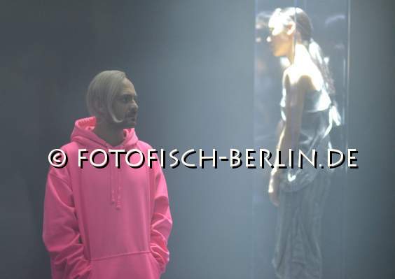Ort: Radialsystem V. Sasha Waltz & Guests. Titel: EXODOS. Urauffuehrung: 23.08.2018. Regie und Choreographie: Sasha Waltz. Buehne: Heike Schuppelius und Sasha Waltz. Kostueme: Federico Polucci und Sasha Waltz & Guests. Licht: Urs Schoenebaum. Musik: Soundwalk Collective. Tanz und Choreographie: Tanz und Choreographie: Sasha Waltz & Guests Im Bild: Sasha Waltz & Guests, Oeffentliche Probe mit Publikum.