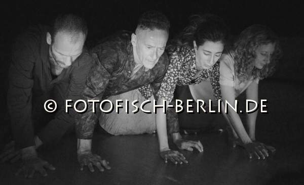 Ort: Uferstudio 1. Tanzcompagnie Rubato. Titel: blue-sky thinking. Urauffuehrung: 14.11.2018. Inszenierung, Choreografie: Jutta Hell Tanz, Choreografie: Dieter Baumann, Alessandra Defazio, Carlos Osatinsky, Anja Sielaff. Komposition, Live Musik: Alexander Nickmann. Licht: Fabian Bleisch. Kostueme: Jutta Hell, Claudia Janitschek. Im Bild: Dieter Baumann, Alessandra Defazio, Carlos Osatinsky, Anja Sielaff