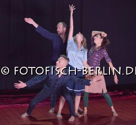 Ort: Uferstudio 1. Tanzcompagnie Rubato. Titel: blue-sky thinking. Urauffuehrung: 14.11.2018. Inszenierung, Choreografie: Jutta Hell Tanz, Choreografie: Dieter Baumann, Alessandra Defazio, Carlos Osatinsky, Anja Sielaff. Komposition, Live Musik: Alexander Nickmann. Licht: Fabian Bleisch. Kostueme: Jutta Hell, Claudia Janitschek. Im Bild: Dieter Baumann, Alessandra Defazio, Carlos Osatinsky, Anja Sielaff